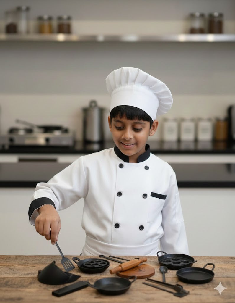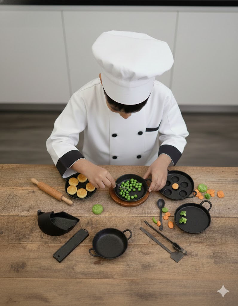 Perfectly sized for kids, this complete kitchen set encourages role play, creativity, and early life skills—making pretend cooking fun, engaging, and meaningful.